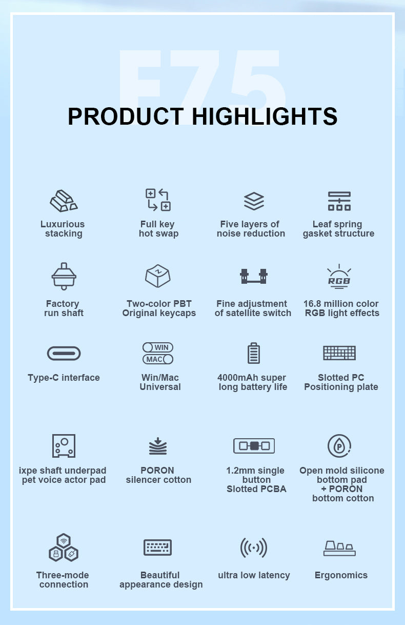 Experience next-level precision, speed, and versatility with the Aula F75 — a 75% wireless mechanical keyboard designed for gamers, esports competitors, and professionals alike. Whether you’re dominating ranked matches or working on deadlines, this keyboard adapts to your every need.